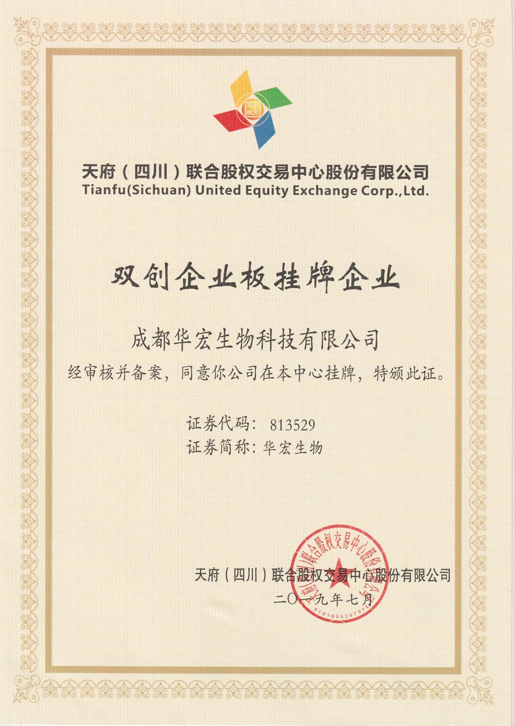 雙創(chuàng)企業(yè)版掛牌證書